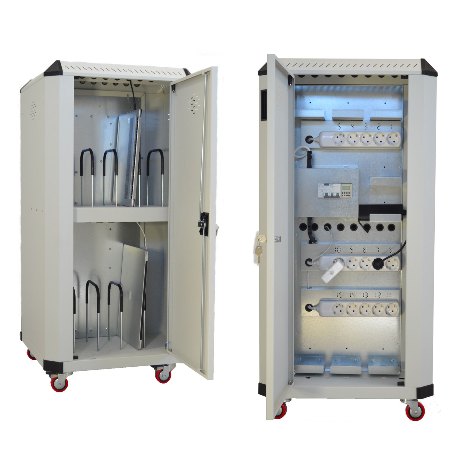L’intégration verticale des ordinateurs et les multiples prises Schuko pour les chargeurs d’origine simplifient l’organisation et l’accès aux appareils, rendant le processus de chargement et de récupération des PC rapide et efficient.